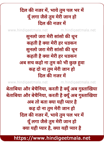 Lyrics of Dil Ki Najar Me - दिल की नजर में