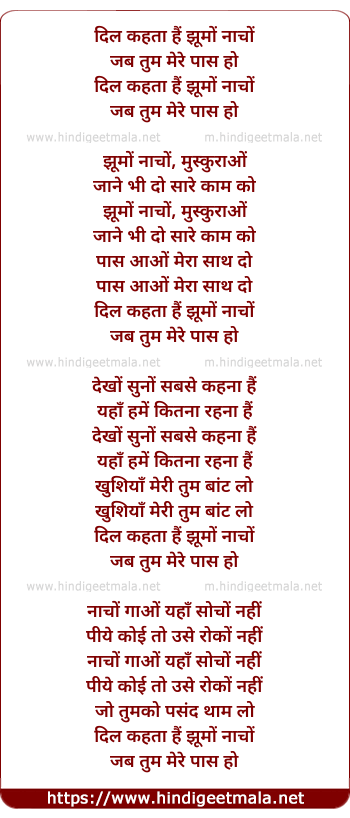 Lyrics of Dil Kehtaa Hai - दिल कहता हैं झूमों नाचों