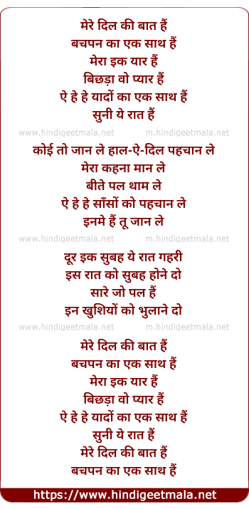 Lyrics of Dil Ki Baat - मेरे दिल की बात हैं
