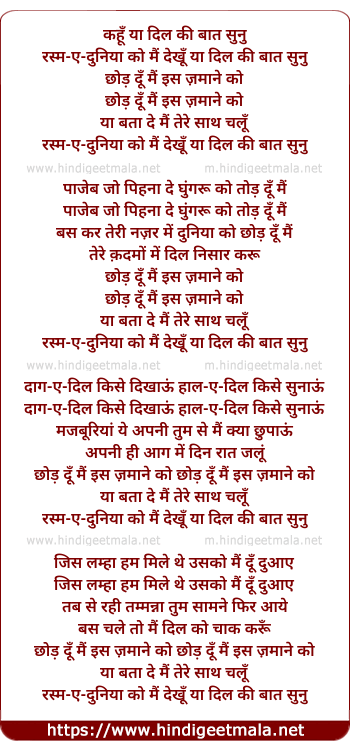 rasam-e-duniya ko main dekhun ya dil ki baat sunu