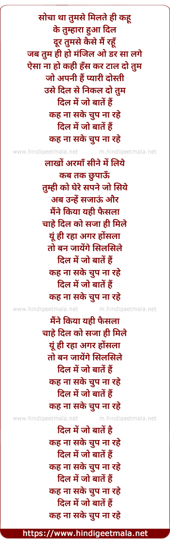 Poetic Translation - Lyrics of Dil Ki Baatei - सोचा था तुमसे मिलते ही कहू