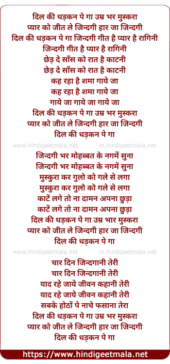 Lyrics of Dil Ki Dhadkan Par Gaa - दिल की धड़कन पे गा उम्र भर मुस्करा