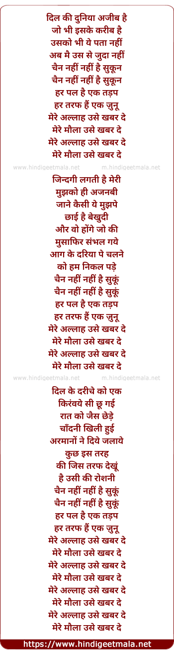 Lyrics of Dil Ki Duniya - दिल की दुनिया अजीब है