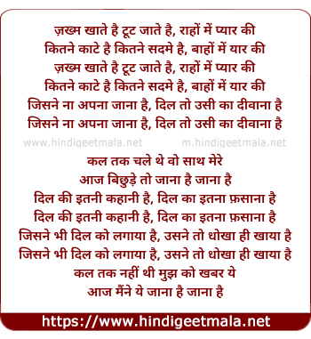 ho zakham khate hai tut jate hai,raho me pyar ki
