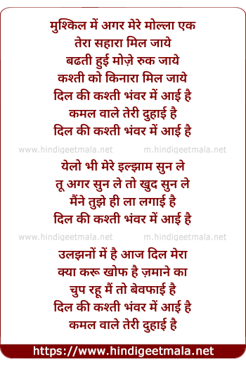 Lyrics of Dil Ki Kashti Bhanwar Me Aayi Hai - दिल की कश्ती भंवर में आई है