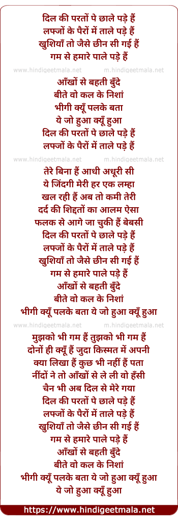 Lyrics of Dil Ki Parton Pe - दिल की परतों पे
