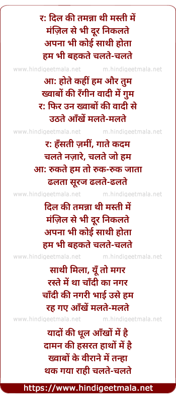 Poetic Translation - Lyrics of Dil Ki Tamanna Thi Masti Me Manzil Se (Duet) - दिल की तमन्ना थी मस्ती में मंज़िल से