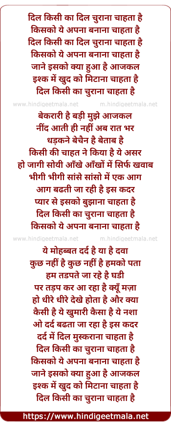 dil kisi ka dil churana chahata hai