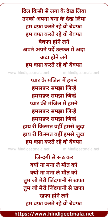 Lyrics of Dil Kisi Se Lagake Dekh Liya - दिल किसी से लगा के देख लिया