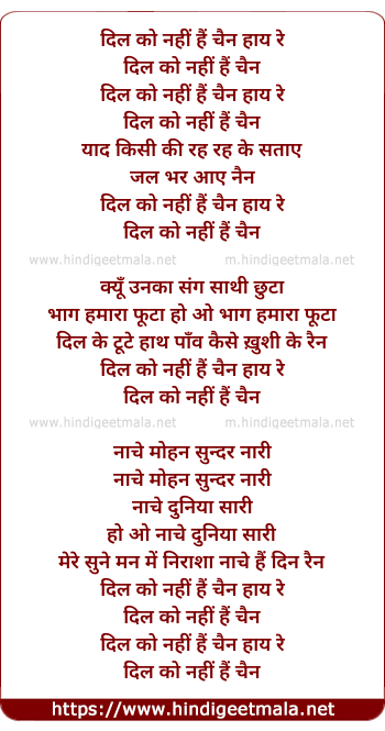 Lyrics of Dil Ko Nahi Chain Re Hai Re - दिल को नहीं चैन रे हैं रे