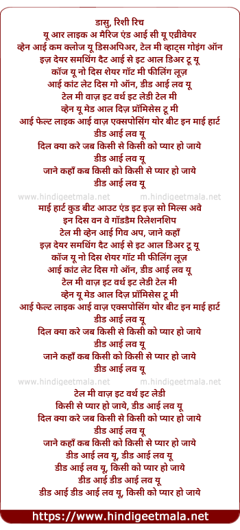 Lyrics of Dil Kya Kare (Did I Love You) - डासु, रिशी रिच