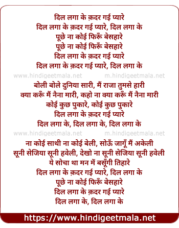 Lyrics of Dil Laga Ke Kadar Gayi Pyare - दिल लगा के क़दर गई प्यारे