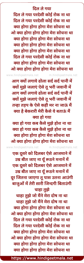 Lyrics of Dil Le Gaya Pardesee Koyee Rok Na Tha - दिल ले गया परदेशी कोई रोक ना था