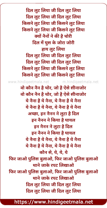 Lyrics of Dil Lut Liya Ji Dil Lut Liya - दिल लुट लिया जी दिल लुट लिया
