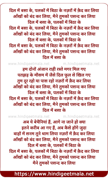 dil me basa ke, palko me bitha ke nazro me kaid kar liya