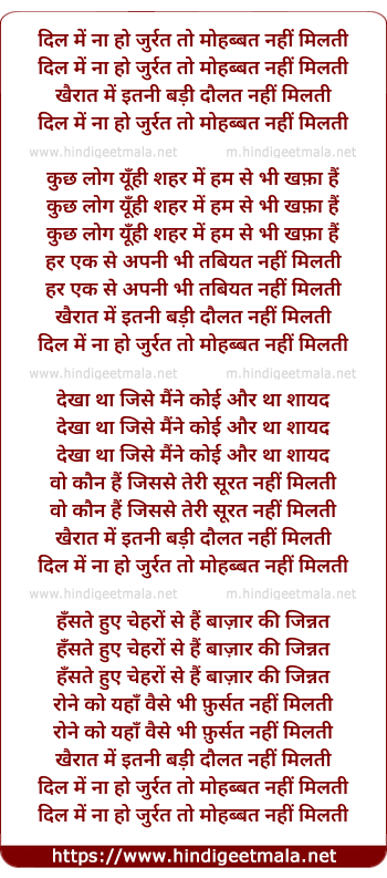Lyrics of Dil Mein Naa Ho Jurrat - दिल में ना हो जुर्रत तो मोहब्बत नहीं मिलती