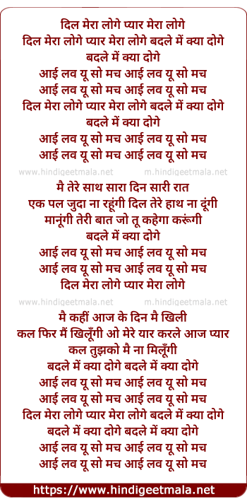 Lyrics of Dil Mera Loge Pyaar Mera Loge - दिल मेरा लोगे प्यार मेरा लोगे