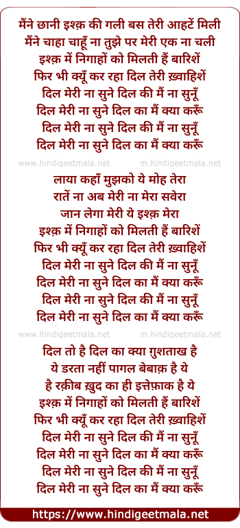 Lyrics of Dil Meri Naa Sune - दिल मेरी ना सुने