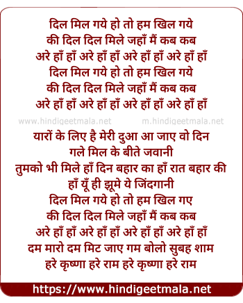 Dil Mil Gaye Ho To Hum Khil Gaye - दिल मिल गये हो तो हम खिल गये