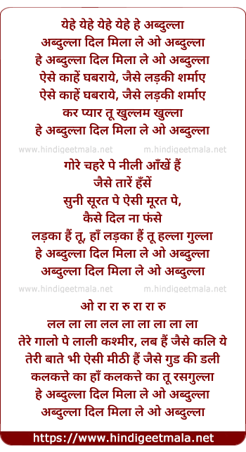 Lyrics of Dil Mila Le O Abdulla - दिल मिला ले ओ अब्दुल्ला