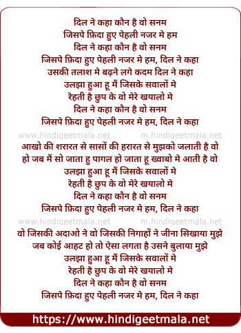 Lyrics of Dil Ne Kahaa Kaun Hai Vo Sanam, Ulajhaa Hun Main - दिल ने कहा कौन है वो सनम, उलझा हुआ हूँ