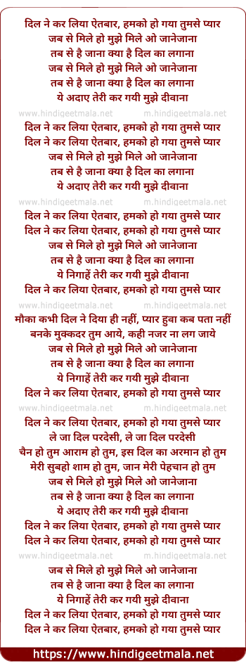 Lyrics of Dil Ne Kar Liya Aitbaar - दिल ने कर लिया ऐतबार