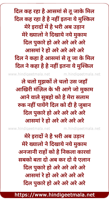 dil kah raha hai aasman se tu jake mil