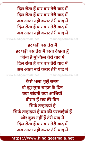 Lyrics of Dil Rotaa Hai Bar Bar - दिल रोता हैं बार बार
