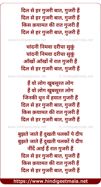 Lyrics of Dil Se Har Guzri Baat - दिल से हर गुजरी बात, गुजरी हैं