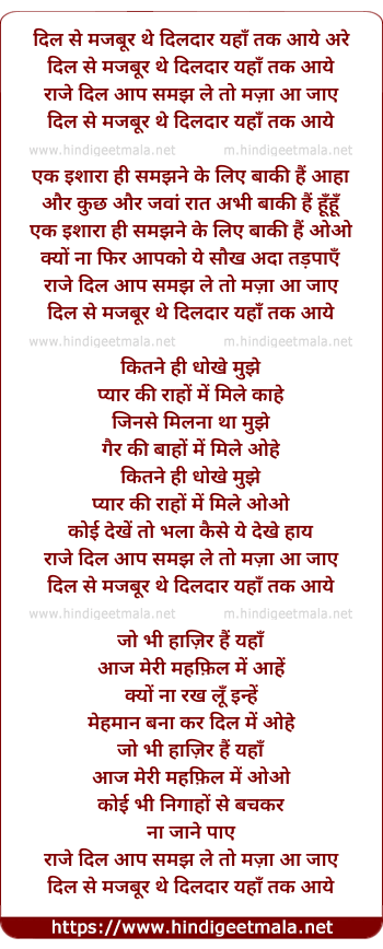 Lyrics of Dil Se Majbur The Dildar Yaha Tak Aaye - दिल से मजबूर थे दिलदार यहाँ तक आये