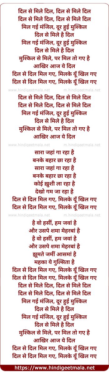 Poetic Translation - Lyrics of Dil Se Mile Dil Mil Gaye (2) - दिल से मिले दिल, दिल से मिले दिल