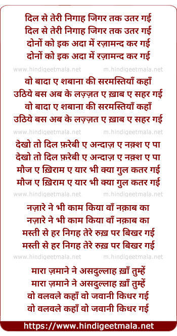 Lyrics of Dil Se Teri Nigah Jigar Tak Utar Gayi - दिल से तेरी निगाह जिगर तक उतर गई