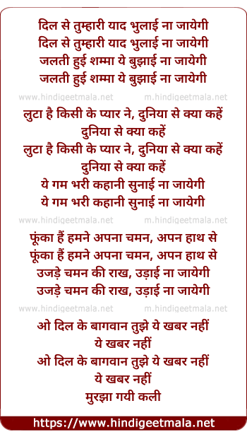 Lyrics of Dil Se Tumhari Yaad - दिल से तुम्हारी याद भुलाई ना जायेगी