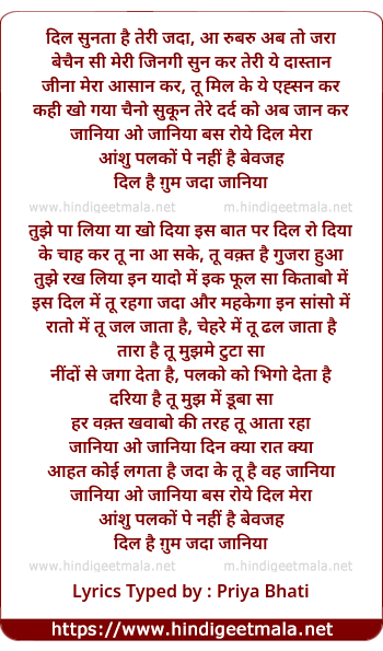 Lyrics of Dil Sunta Hai Teri Sadaa - दिल सुनता है तेरी जदा, आ रुबरु अब तो जरा
