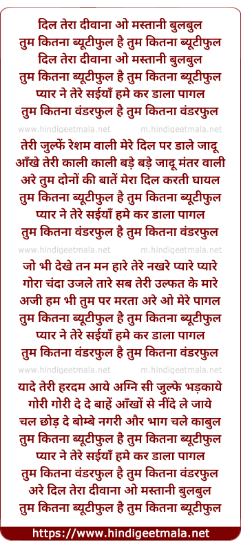 Lyrics of Dil Tera Diwana O Mastani Bulbul - दिल तेरा दीवाना ओ मस्तानी बुलबुल