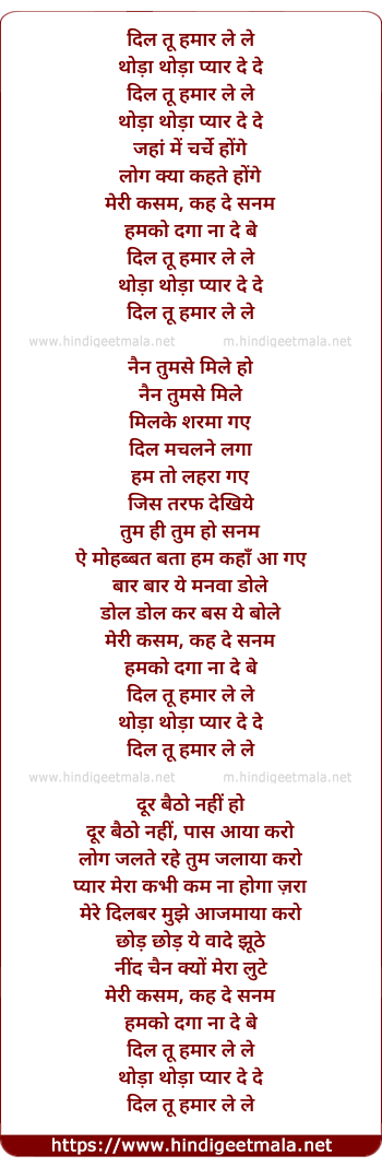 dil tu humaar le le