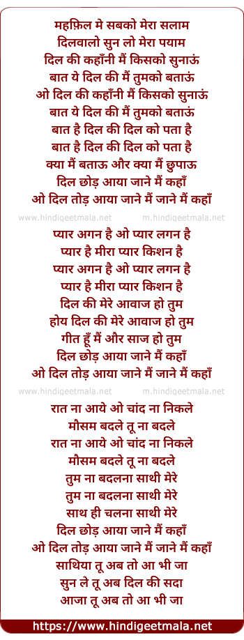 Lyrics of Dil Tod Aaya Jane Main Kaha - दिल तोड़ आया जाने मैं कहाँ