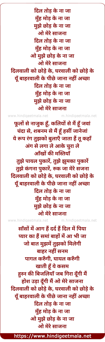 Lyrics of Dil Tod Ke Na Jaa - दिल तोड़ के ना जा