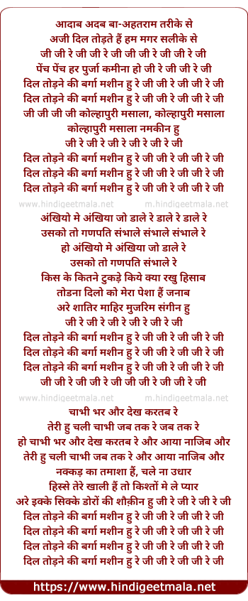 Lyrics of Dil Todne Ki Masheen - दिल तोड़ने की मशीन