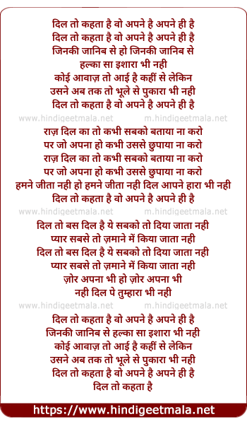 Lyrics of Dil To Kehata Hai Wo Apane Hai - दिल तो कहता है वो अपने है
