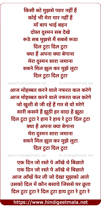 Lyrics of Dil Tuta Kya Hai Apna - दिल टुटा क्या हैं अपना