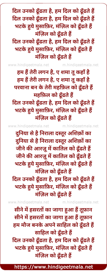 Lyrics of Dil Unko Dhundhata Hai, Ham Dil Ko Dhundhate Hai - दिल उनको ढूँढता है, हम दिल को ढूँढते हैं
