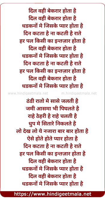 Lyrics of Dil Wahi Bekaraar Hota Hai - दिल वही बेकरार होता है