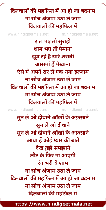 Lyrics of Dil Walo Ki Mahfil Me - दिल वालों की महफ़िल में