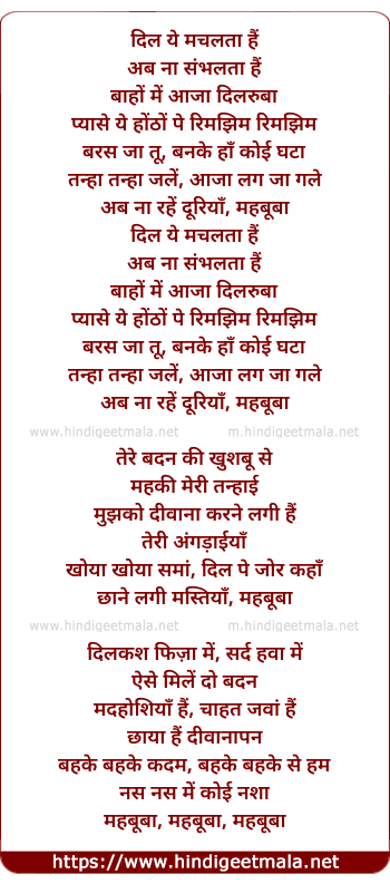 Lyrics of Dil Ye Machalta Hai (Mehbooba) - दिल ये मचलता हैं