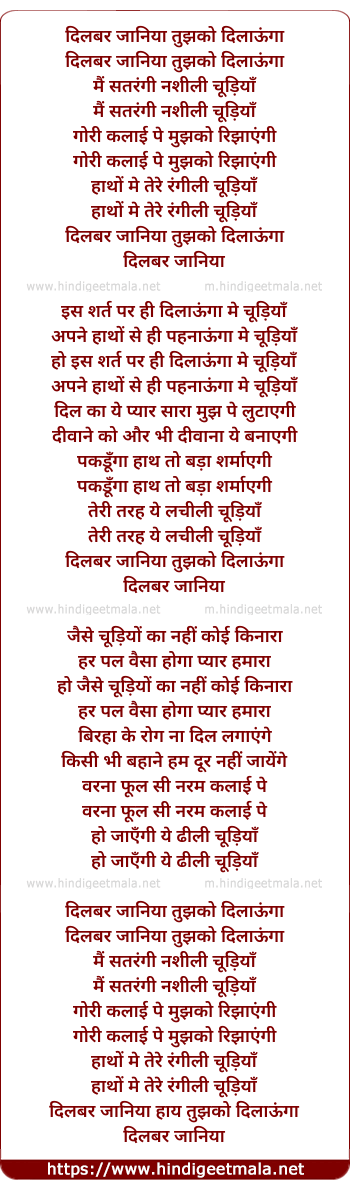 Lyrics of Dilbar Janiya Tujhko Dilaunga - दिलबर जानिया तुझको दिलाऊंगा