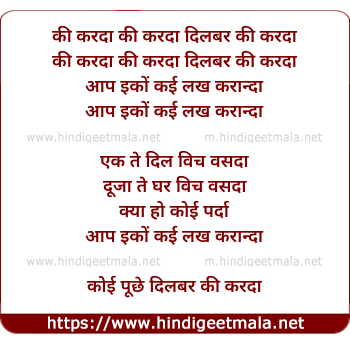 Lyrics of Dilbar Ki Karda - की करदा की करदा दिलबर की करदा