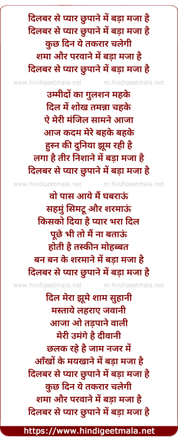 Lyrics of Dilbar Se Pyar Chhupane Me Bada Maja - दिलबर से प्यार छुपाने में बड़ा मजा