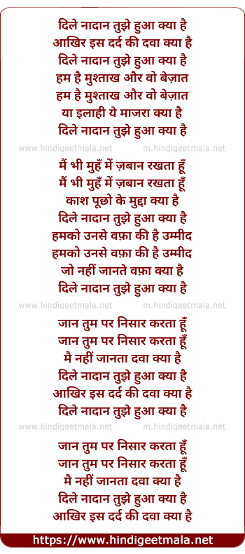 Lyrics of Dil-E-Nadan Tujhe Hua Kya Hai - दिल-ए-नादान तुझे हुआ क्या है
