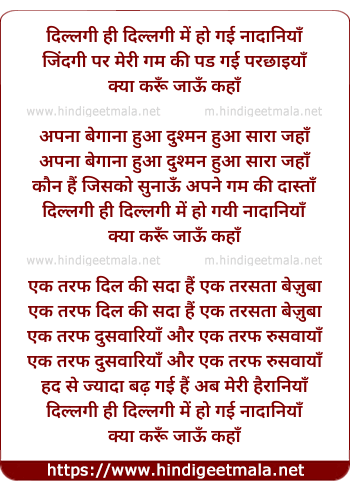 Lyrics of Dillagi Hi Dillagi Me Ho Gayi Nadaniya - दिल्लगी ही दिल्लगी में हो गई नादानियाँ